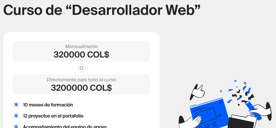 Por solo 3.2 millones de pesos colombianos puedes aprender programación con todo un equipo de apoyo a tu servicio.